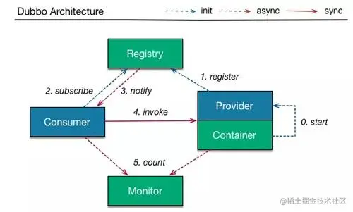 - **Monitor:**统计服务和调用次数,调用时间监控中心。(Dubbo 的控制台页面中可以显示,目前只有一个简单版本。)