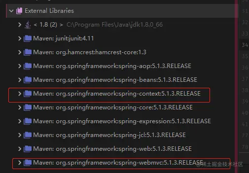 - Spring Web MVC项目引入下面两个包,其他的包会自动依赖