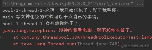 System.out.println(Thread.currentThread().getName() + "-女神放你鸽子了!");
