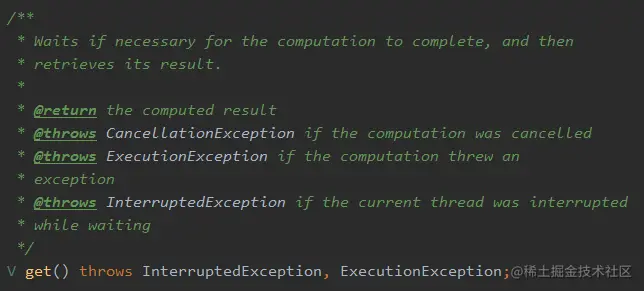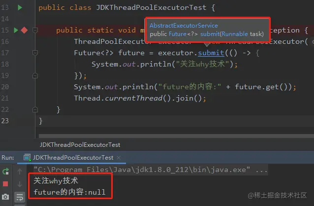 同时,我们也可以看到 future.get() 方法的返回值为 null。