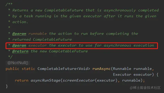 可以看一下 execute 方法,接受一个 Runnable 方法,返回类型是 void: