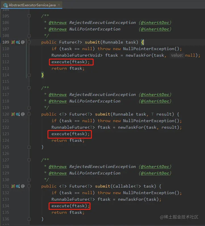 先是最简单的,execute 方式提交,不关心返回值的,直接往线程池里面扔任务就完事:
