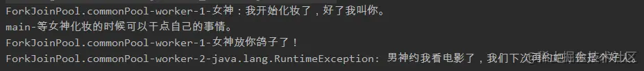 如果异步任务执行的时候抛出了异常,比如女神被她的男神约走了,异步任务改成这样: