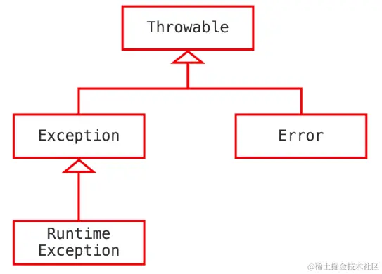 Exception 有一个特殊的子类 RuntimeException,用来表示“程序虽然无法继续执行,但是还能抢救一下”的情况。前边提到的数组索引越界便是其中的一种。RuntimeException 和 Error 属于 Java 里的非检查异常(unchecked exception)。其他异常则属于检查异常(checked exception)。在 Java 语法中,所有的检查异常都需要程序显式地捕获,或者在方法声明中用 throws 关键字标注。通常情况下,程序中自定义的异常应为检查异常,以便最大化利用 Java 编译器的编译时检查。