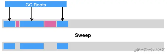 第一种是清除(sweep),即把死亡对象所占据的内存标记为空闲内存,并记录在一个空闲列表(free list)之中。当需要新建对象时,内存管理模块便会从该空闲列表中寻找空闲内存,并划分给新建的对象。