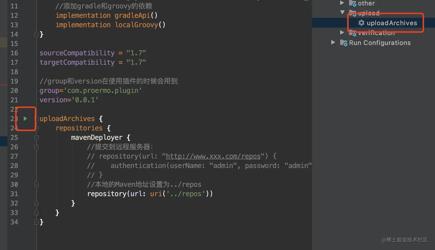 ... //resources/META-INF/gradle-plugins下的properties文件名称 apply plugin: 'com.proermo.example.plugins' android { ... } dependencies { ... }