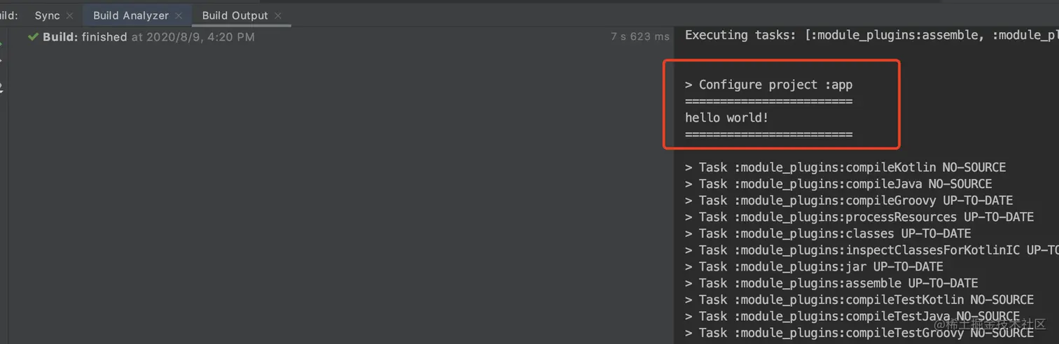 最后验证我们插件是否使用成功,只要构建我们的项目,看到下图输出即可。