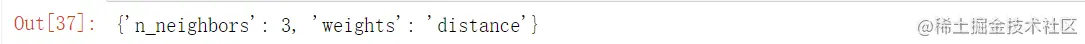 结果显示最优参数组合为:k=3和权重weights="distance"