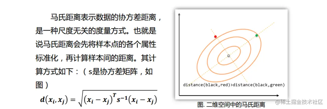 - 距离的度量:欧氏距离、曼哈顿距离、马氏距离、夹角余弦