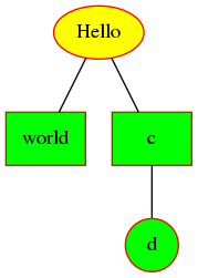 a [shape = "ellipse", fillcolor = "yellow", label = "Hello"] //对某个节点进行单独设置