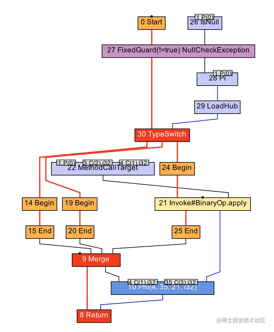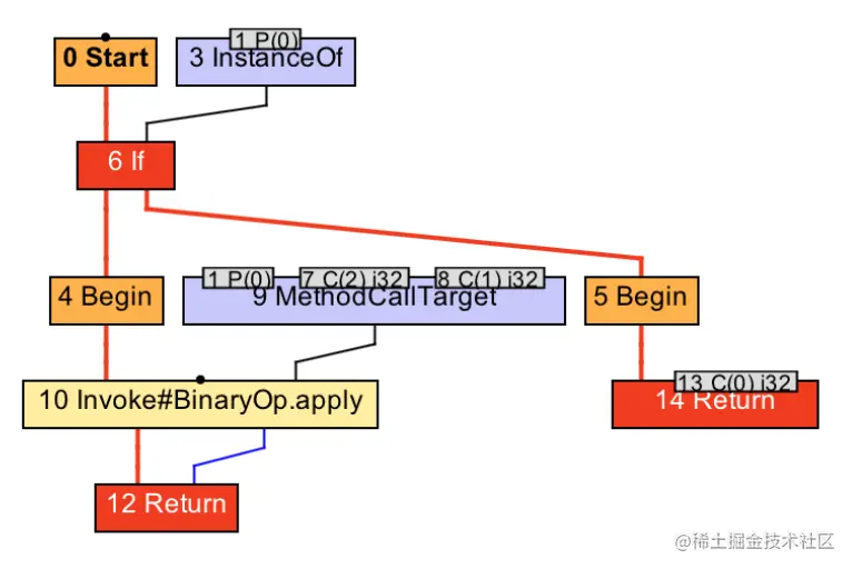 经过方法内联之后,即时编译器将得到一个新的 IR 图,并且在接下来的编译过程中对这个新的 IR 图进行进一步的优化。不过在上面这个例子中,方法内联后的 IR 图并没有能够进一步优化的地方。