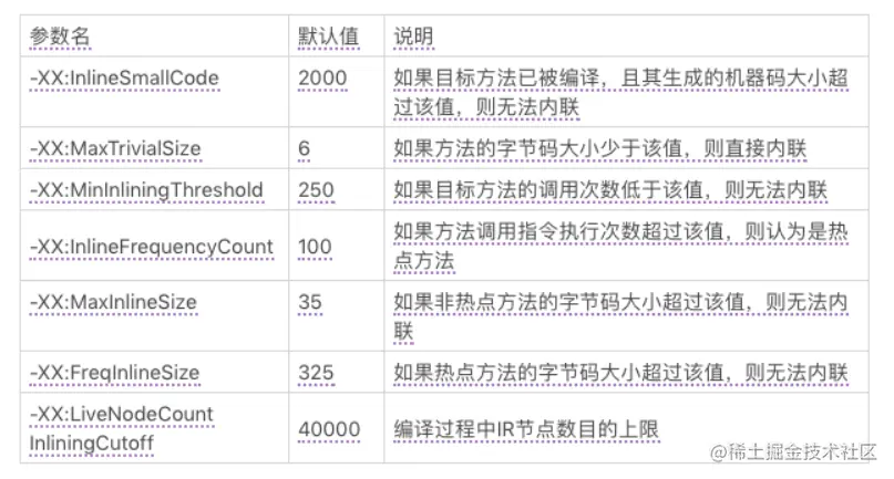 我在上面的表格列举了一些 C2 相关的虚拟机参数。总体来说,即时编译器中的内联算法更青睐于小方法。
