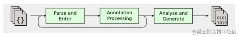 在介绍注解处理器之前,我们先来了解一下 Java 编译器的工作流程。