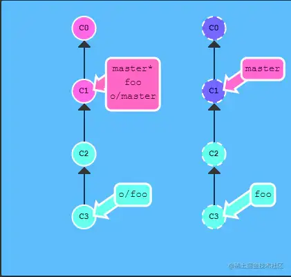 他会把远程的foo分支代码,拉到本地的远程分支上, 假如本地没有远程仓库这个分支怎么办,同样的他也会在本地创建一个远程分支。