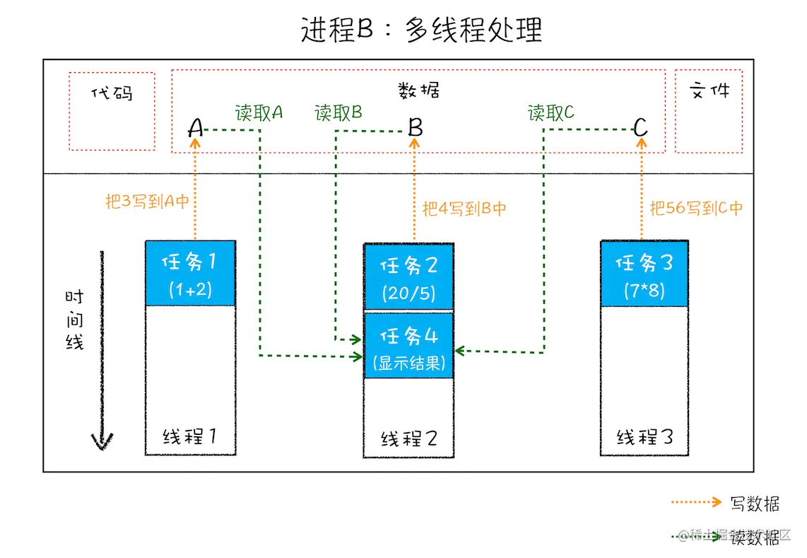 一个进程里可以有多个线程。线程不能单独存在,它是依附于进程的,并由进程启动和管理。多个线程之间可以共享进程中的数据,它们可以对进程里的公共数据进行读写操作。同时,只要有一个线程崩溃,那么整个进程就会崩溃。