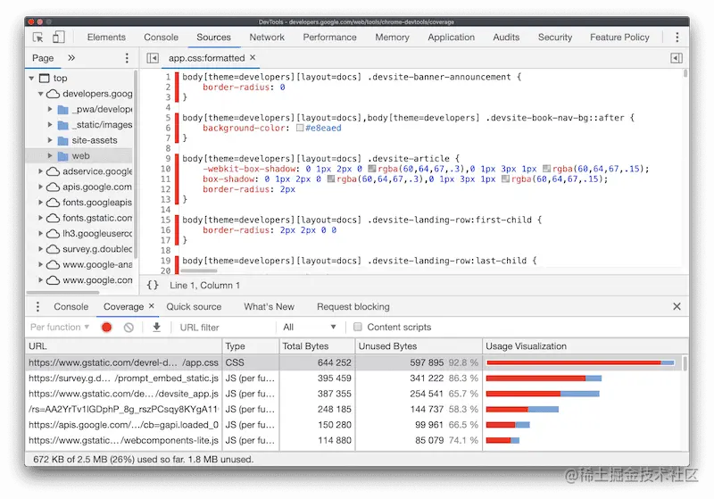 使用开发者工具中的 Coverage 可以找到页面未使用的css。
