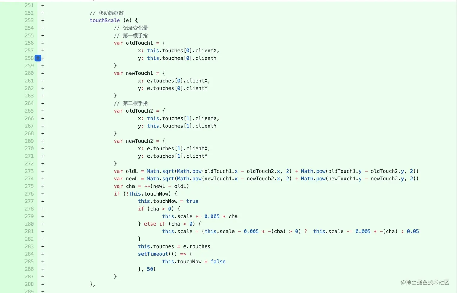 主要采用的移动端 touches 控制,如果 e.touches.length == 2,则为两个手指进行缩放操作。