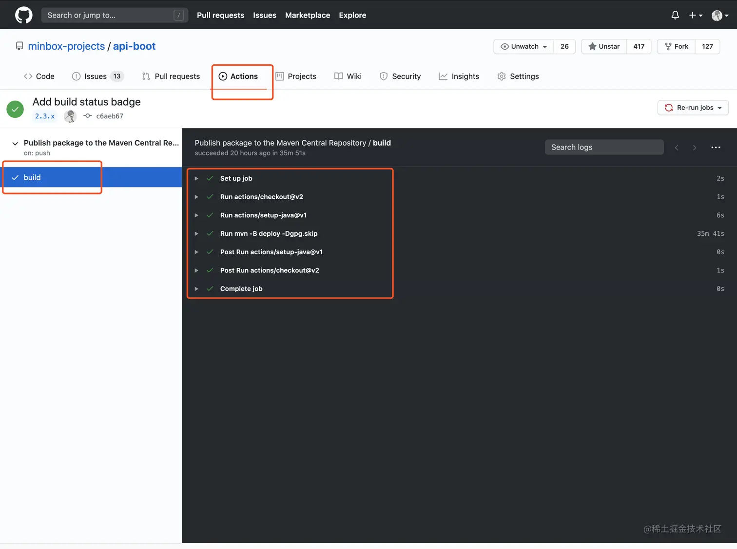 本文的workflow配置文件内容可以访问:github.com/minbox-proj… 。