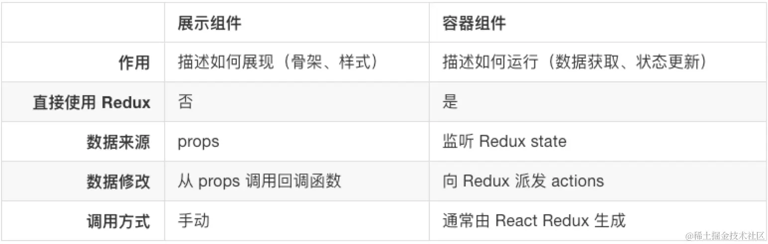 这是相对于UI组件的,容器组建是主要和Redux store建立连接的组件,为什么这么做,参考容器组件和展示组件相分离