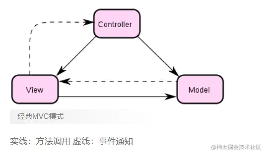 C 是 Controller,控制器,负责监听用户事件,然后调用 M 和 V 更新数据和视图