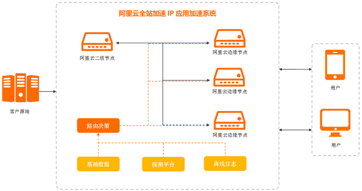 阿里云全站加速立足于阿里云CDN基础设施,内部协议优化以及智能选路系统,大幅提升传输速率和可用性,在弱网环境下传输改善尤为效果。可以做到对客户业务透明转发,无任何侵入,保护客户隐私。同时,源站只需简单适配,即可具备获取客户端IP地址的能力,同时节点分散分布,能够起到一定的芳攻击作用。