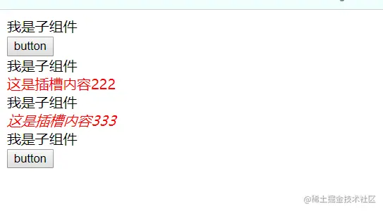 替换了两次插槽,两次未替换显示默认的button。