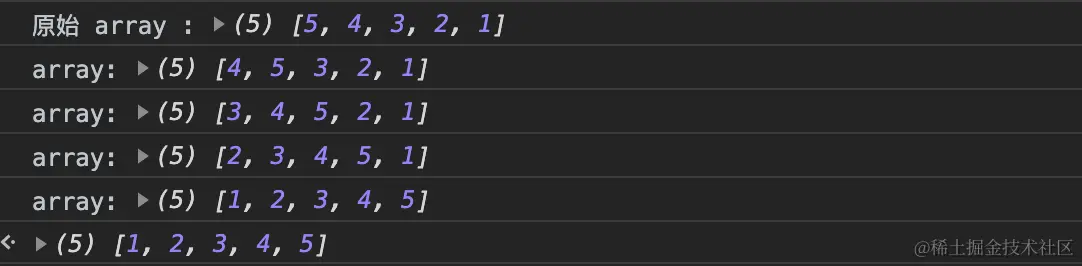 // 里面的循环比外层少一个,且比较的值是当前值的后一个,所以是