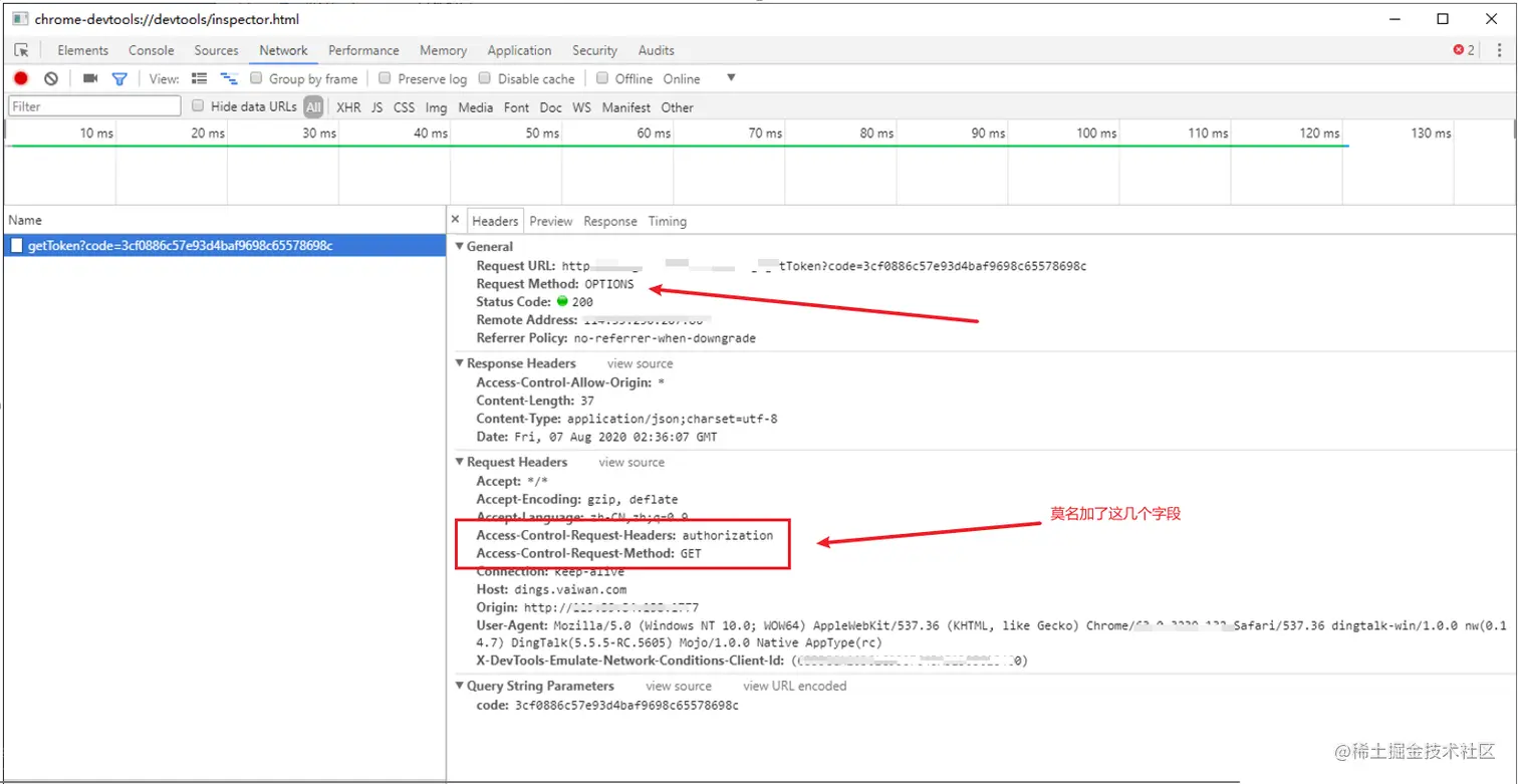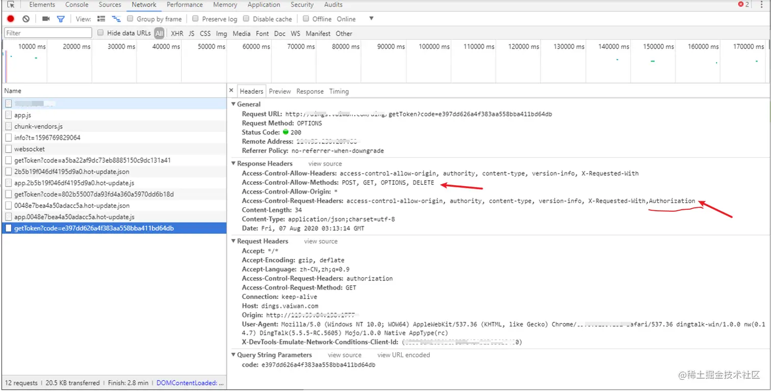 后端给我返回了一堆Access-control-allow, 然后我的浏览器就就会自动发起第二个get类型的请求,最后token值就拿到了。