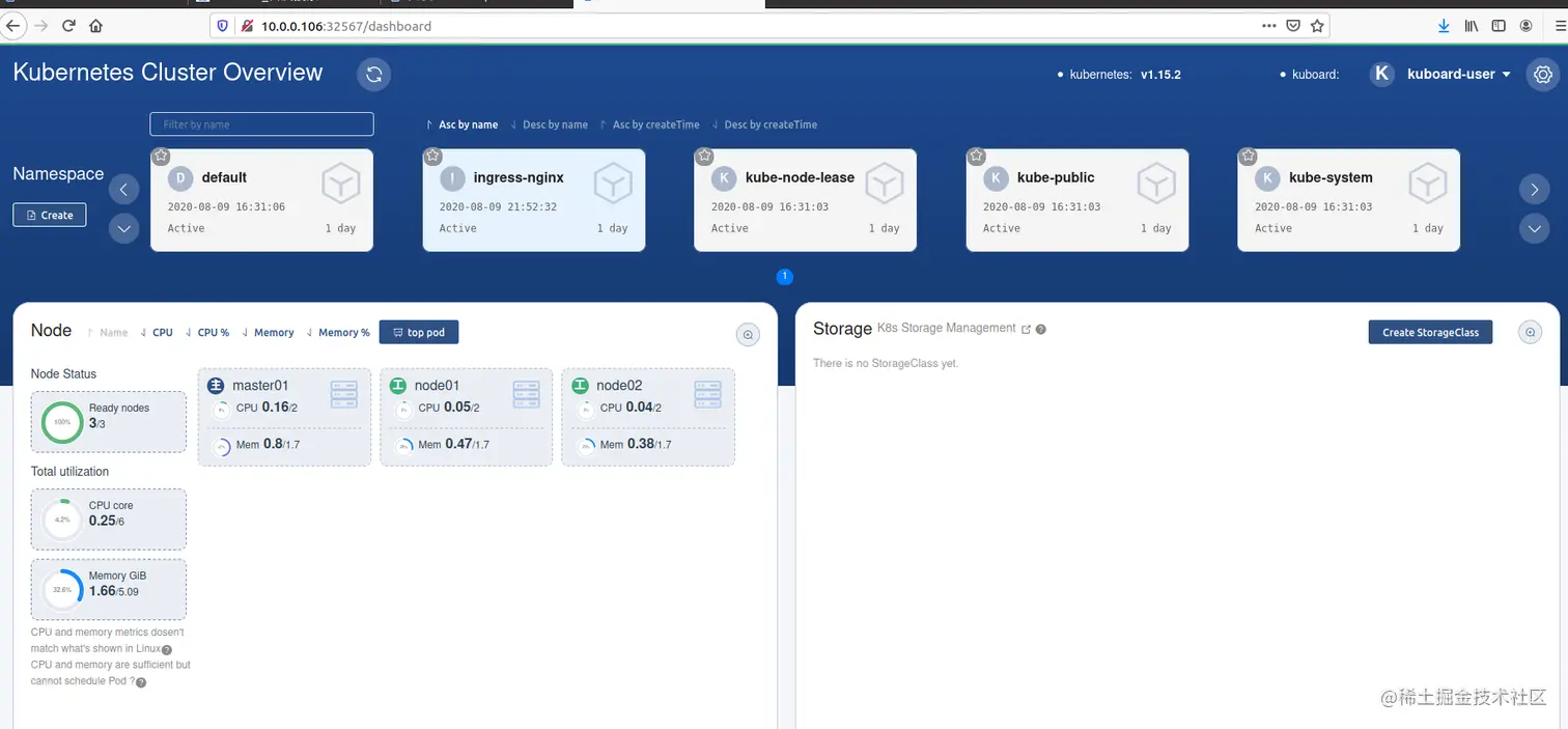 上网查看发现好的开源界面管理工具kuboard,非常适合入门练习,安装和配置都很简单,记录结果如下,后续基础,将继续给予kuboard学习学习