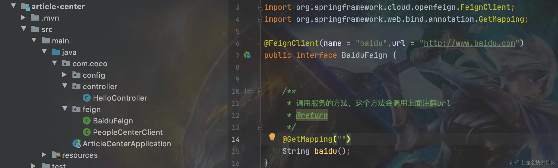 第三:开始编写Feign接口,在peopl-center项目中创建一个接口
