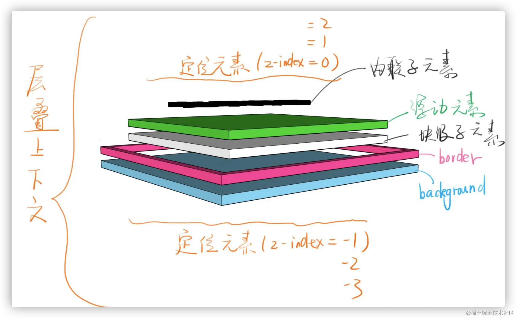可以得出结论:background < boder < div < float < span