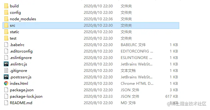 这张图是vue-cli初始化生成后的项目文件。