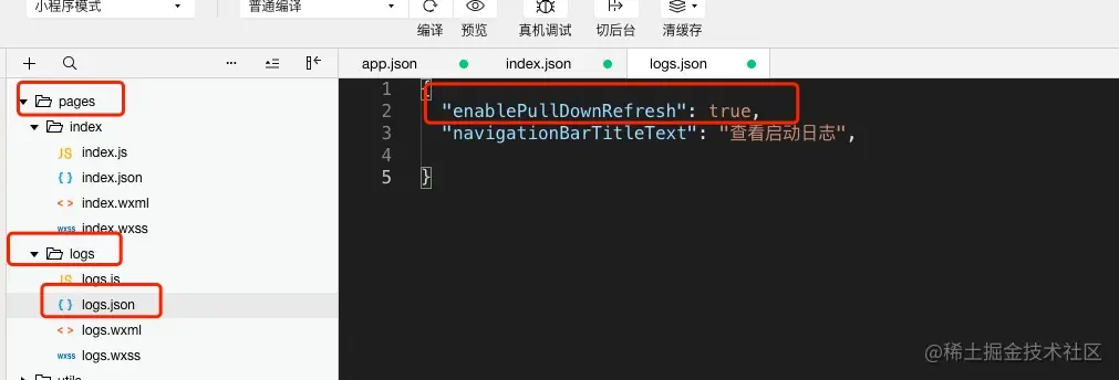 所以在启用下拉刷新和上拉加载更多,其实在微信小程序的开发很简单。只要进行一些相关的配置,就可以如德芙巧克力一般丝滑的使用了。