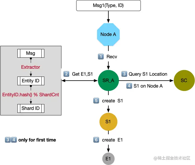 - SR 从 Msg1 获取 Entity ID(E1)和 Shard ID(S1):