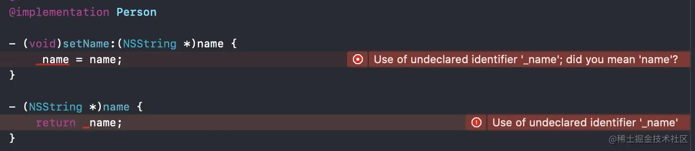 iOS 6 之后 LLVM 编译器引入 property autosynthesis —— 属性自动合成,就是编译器会为每个 @property 添加 @synthesize ,相当于编译器默认帮我们加入了:@synthesize propertyName = _propertyName;