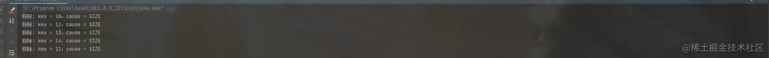 System.out.println("移除: key = " + k + ",cause = " + removalCause);