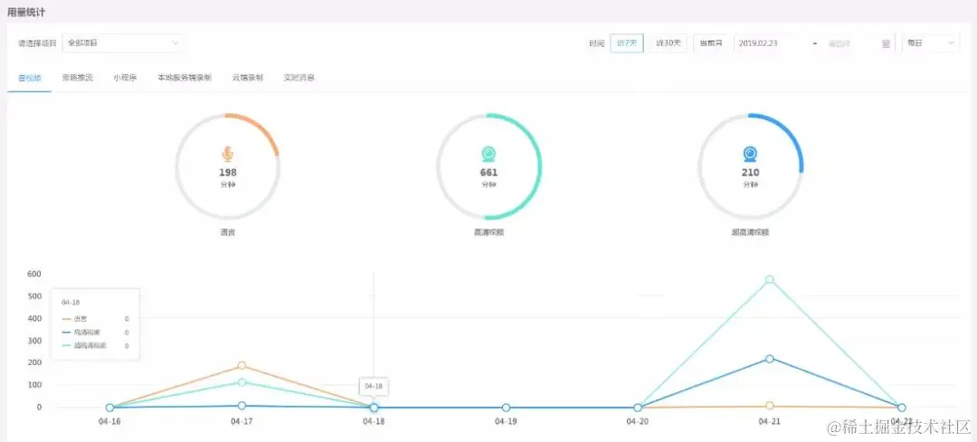 - 用量中心:自动生成图文展示实时用量,可根据需求查看近段时间的用量统计数据,用量变化等,了解用量趋势,提供运营方向的数据支持。