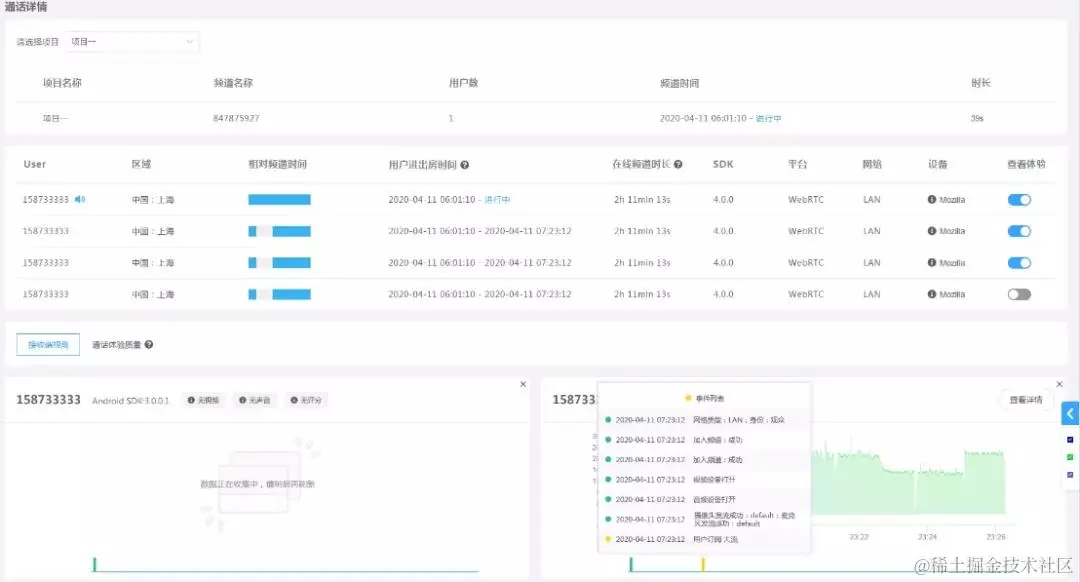 anyRTC新增**监控中心与用量中心**,并进一步优化了**费用中心和服务中心**,可供实时查看动态数据,调整运营方案,消费明细,让客户更放心,更安心。