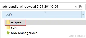 把下载好的eclipse集成开发工具包进行解压,解压完成后选中“adt-bundle-windows-x86_64_20140101”文件夹,双击打开。有两个文件夹,直接打开第一个“eclipse”文件夹,如图4.1所示。