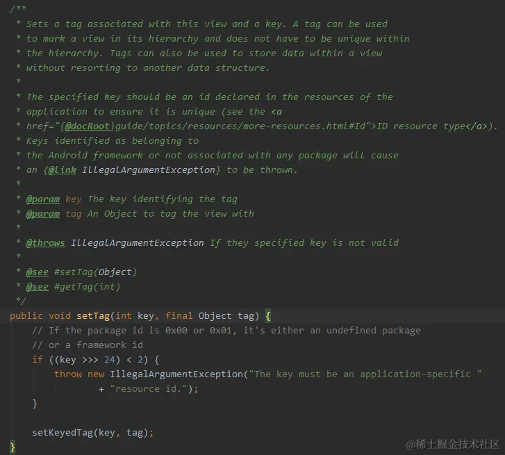 我们看到这个setTag()方法在源码中有一个限制