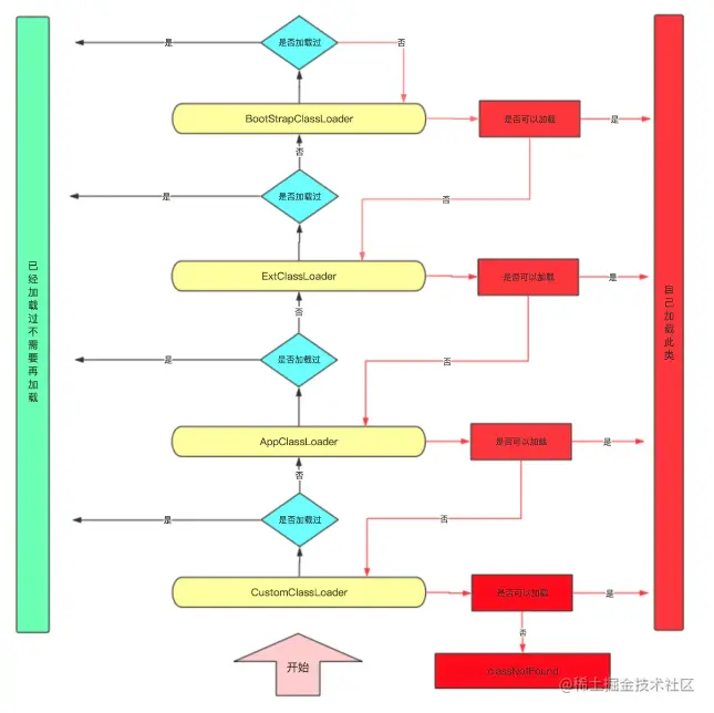 当某个类加载器需要加载某个.class文件时,它首先把这个任务委托给他的上级类加载器,递归这个操作,如果上级的类加载器没有加载,自己才会去加载这个类。