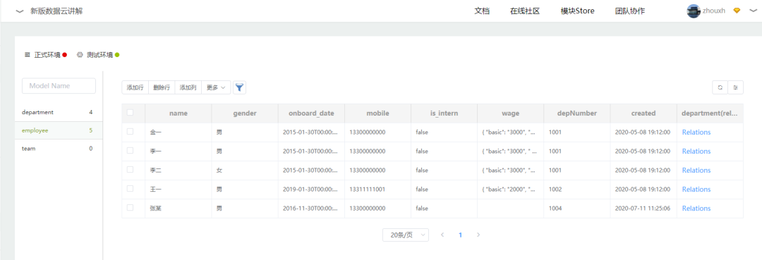 可视化的定义数据表结构,并对数据进行增删改查,支持在页面进行条件筛选完成查询。
