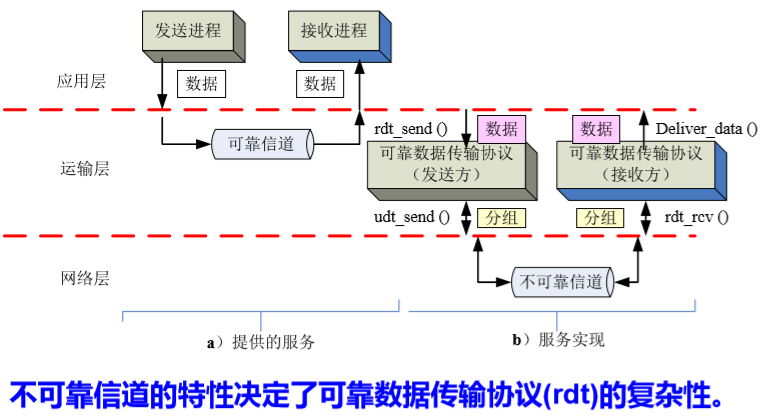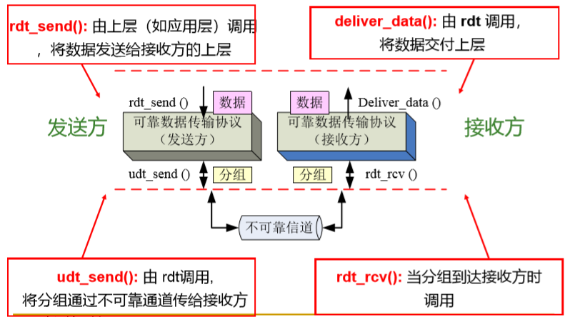 - 接收方:查找错误,可靠交付,取出数据报交付到网络层
