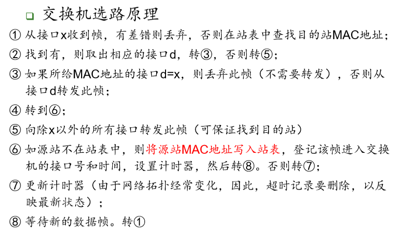 - 交换机维护交换表,实现MAC地址过滤,学习算法
