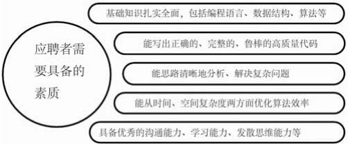扎实的基础知识、能写高质量的代码、分析问题时思路清晰、能优化时间效率和空间效率,以及学习沟通等各方面的能力