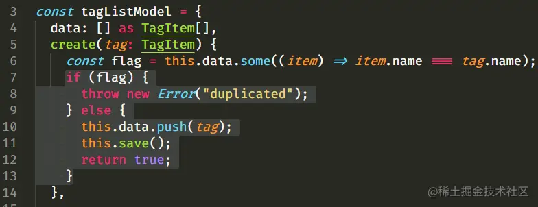 我写的第6行为判断传入的tag的name和数据库中的元素的name是否有相同。