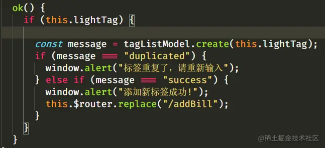 写了一个关于修改TagList的model,并在model中添加了创建(create)方法。