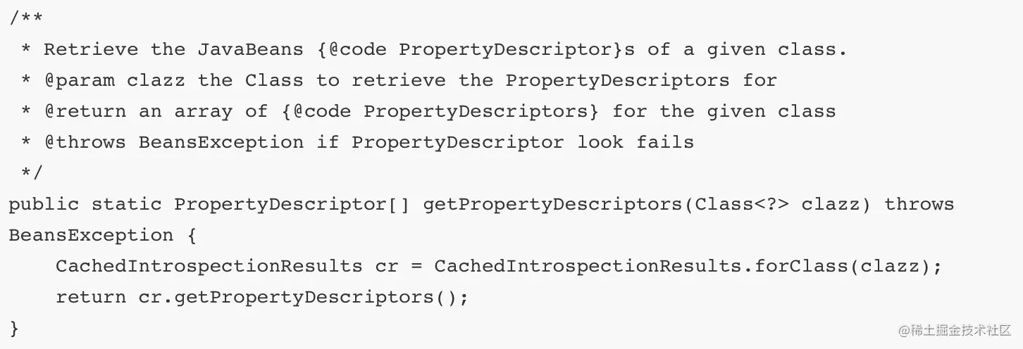 在平时的业务中,我们封装那些交互的数据的时候,大部分会使用get、set来做封装,idea有一个lombok插件提供了data注解。在业务越来越复杂的今天,我们已经避免造轮子了。而是直接去使用。所以我们在做数据转换的时候大部分会使用别人封装好的工具。先介绍第一种-springframework下的BeanUtils。使用反射的原理把source对象的属性赋值给target对象,所以如果你改了字段idea不会提示copy的地方报错需要修改,而是运行才报错。同时要注意的是BeanUtils并不会对null进行处理,而是会将其作为属性值直接赋值给target。如果转换的属性是对象,那这个对象转换的过程中会浅克隆,达成共享。BeanUtils也对其获取对象做了优化,通过对其底层代码的查找,BeanUtils有一个getPropertyDescriptors方法获取所有属性的方法,再往下就会发现获取属性的时候先从强缓存中查找是否有当前类的属性集合,没有就去弱缓存中查找。如果还都没有,才会进行创建创建,因此大大提升了性能。