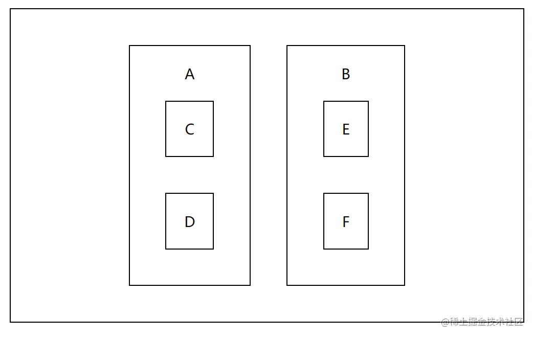 B组件内有 E F 两个组件。