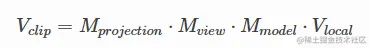 一个顶点的坐标将会根据以下过程被转换到裁剪坐标,每个矩阵被运算的顺序是从右往左乘: